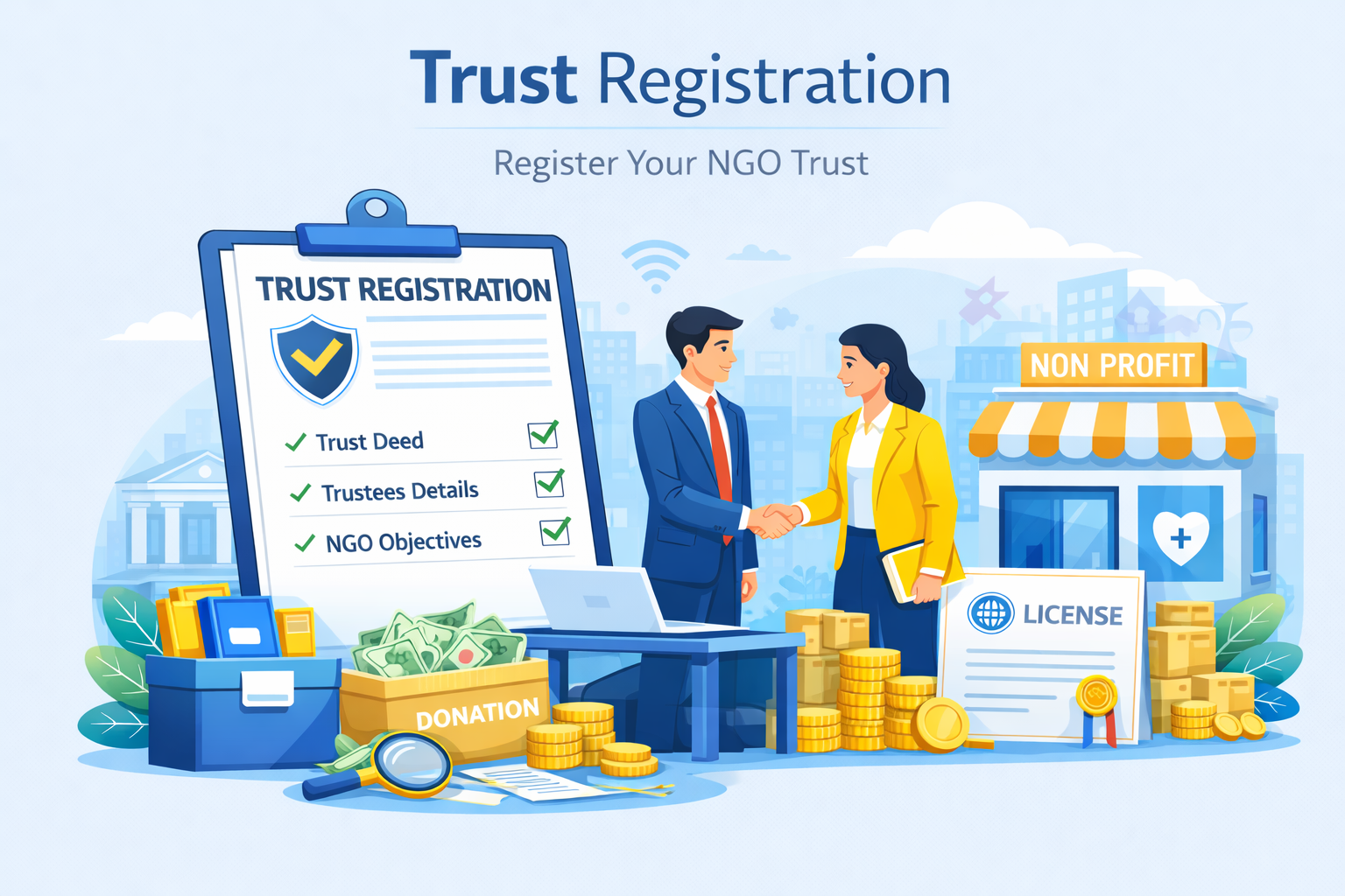 Professional Trust Registration service in India with complete online support. We help you legally register your charitable or NGO trust, including Trust Deed drafting and documentation. Fast, reliable, and hassle-free process with expert assistance from start to finish.